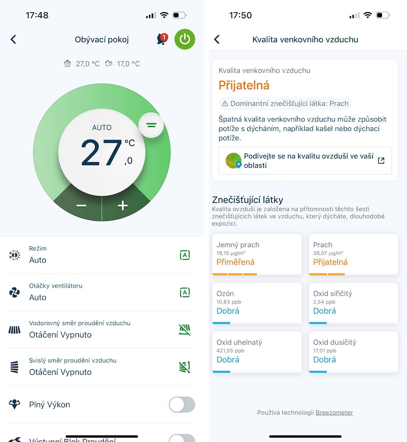 Aplikace vám navíc hlásí i kvalitu vzduchu, úroveň vlhkosti a také se připomene s pravidelným ročním servisem.